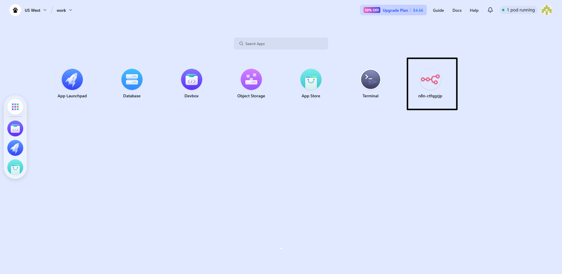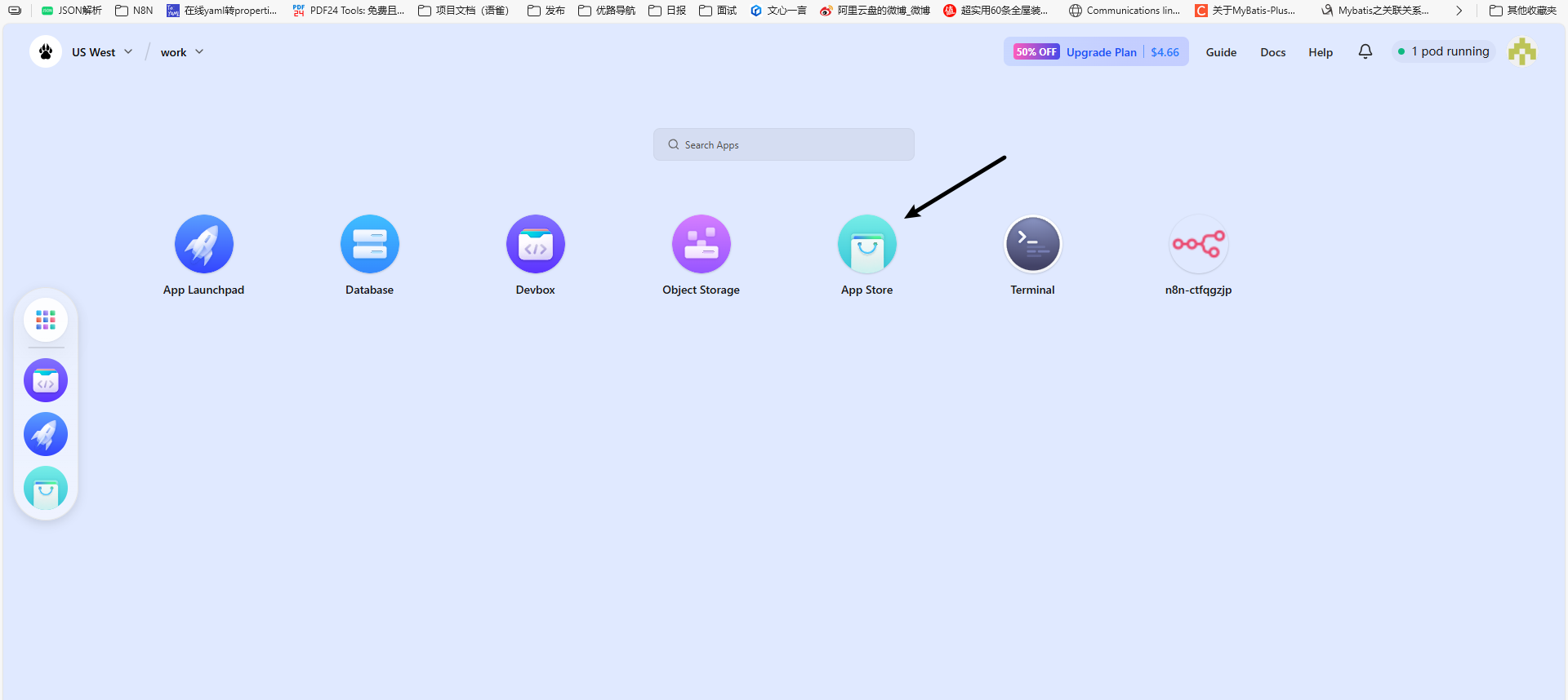 - 通过 App Store 找到 N8N 的应用,执行 Deploy App 🚀