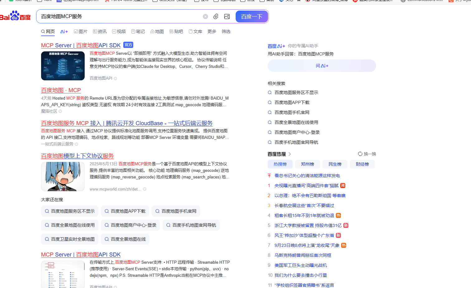 步骤:搜索 MCP 百度地图服务获取 MCP 地址 --> 确认好使用的 MCP 协议(Streamable 还是 SSE) --> 将刚刚创建的 AK 进行替换 🔄