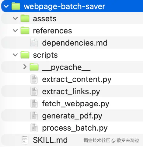 最后,贴一个完整的 SKILL.md,以我自己编写的 webpage-batch-saver 为例子: