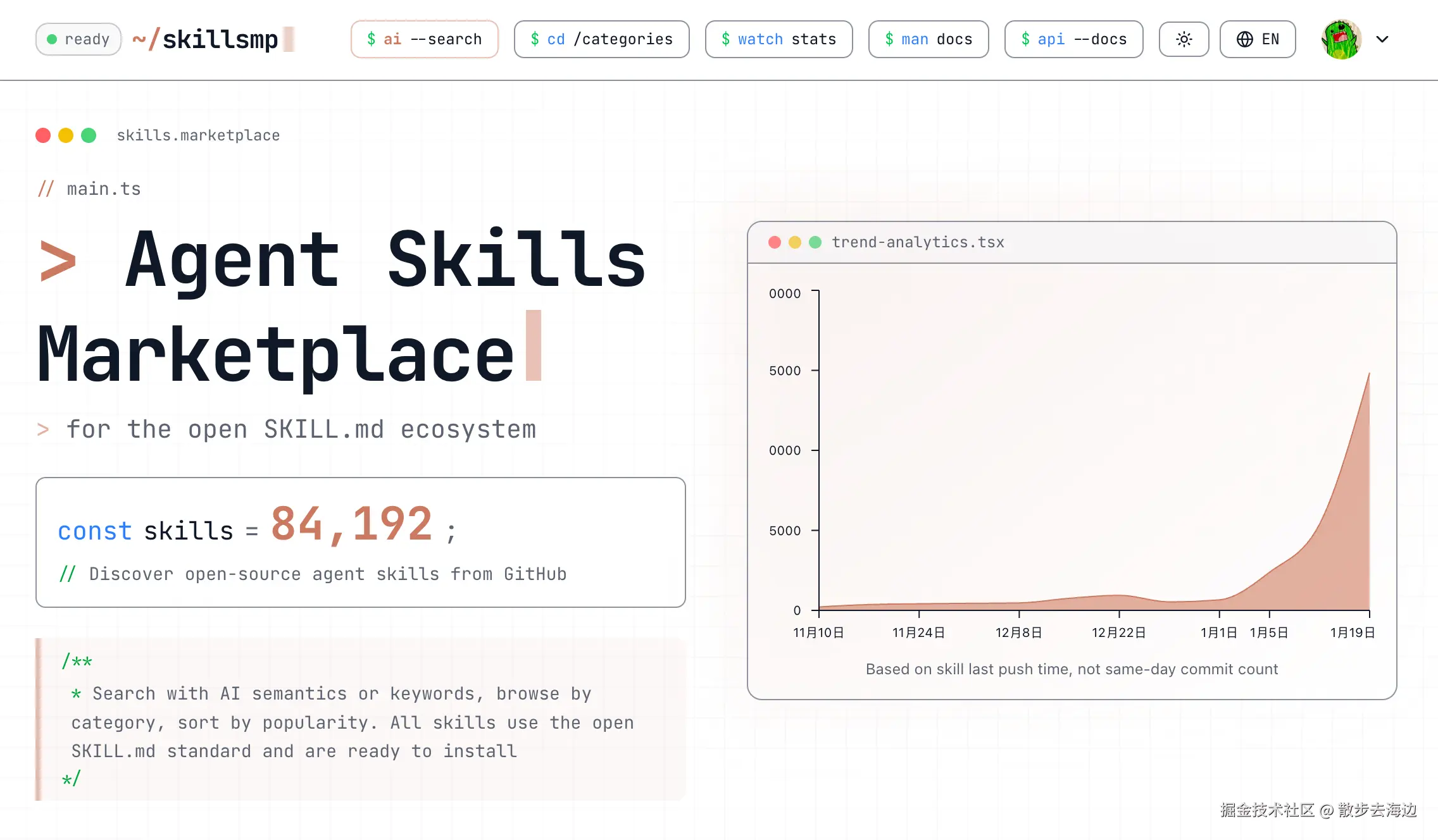 Skill 也有专门的市场,这里推荐:skillsmp.com
