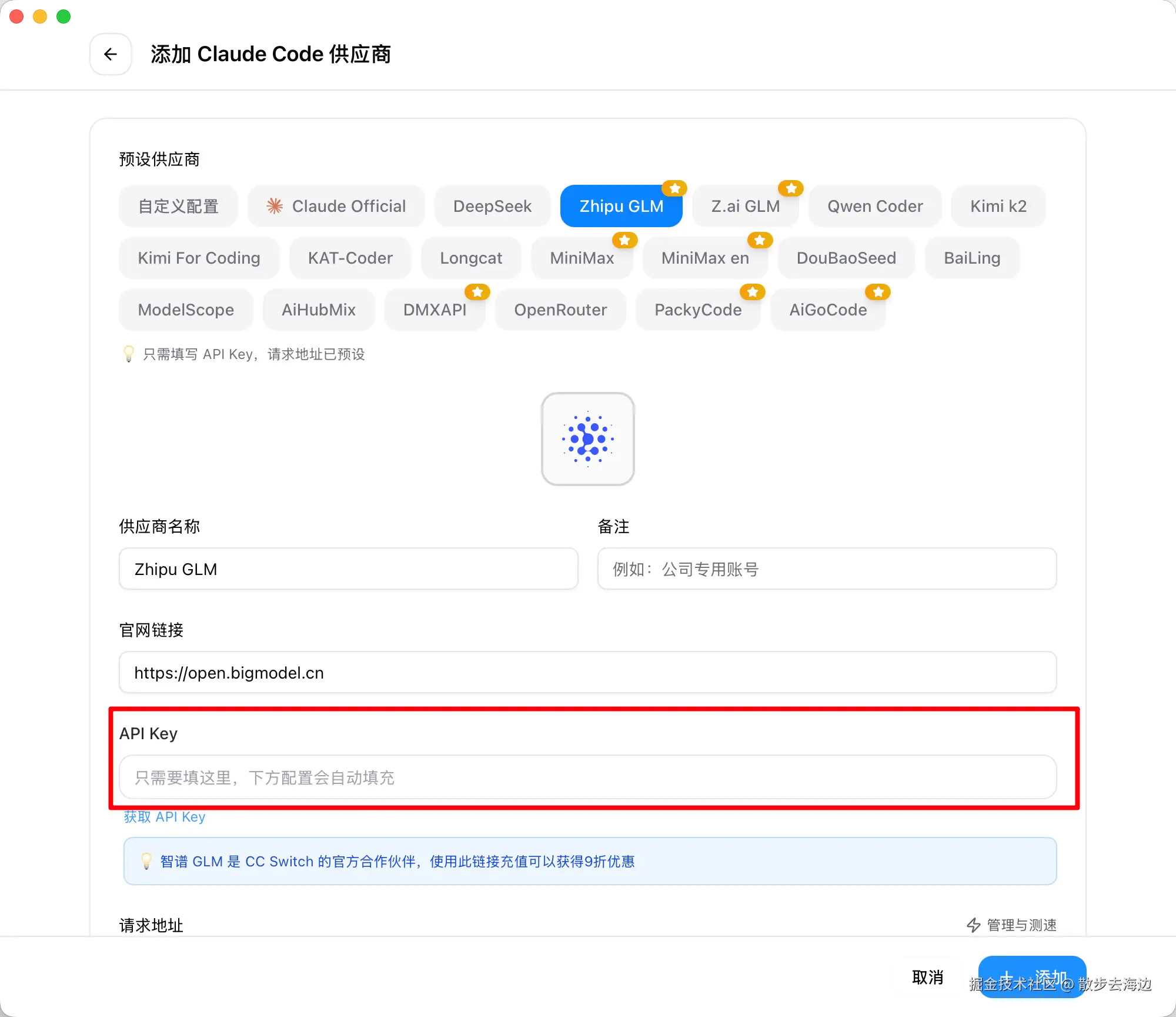 进入 CC Switch ,添加 GLM 配置