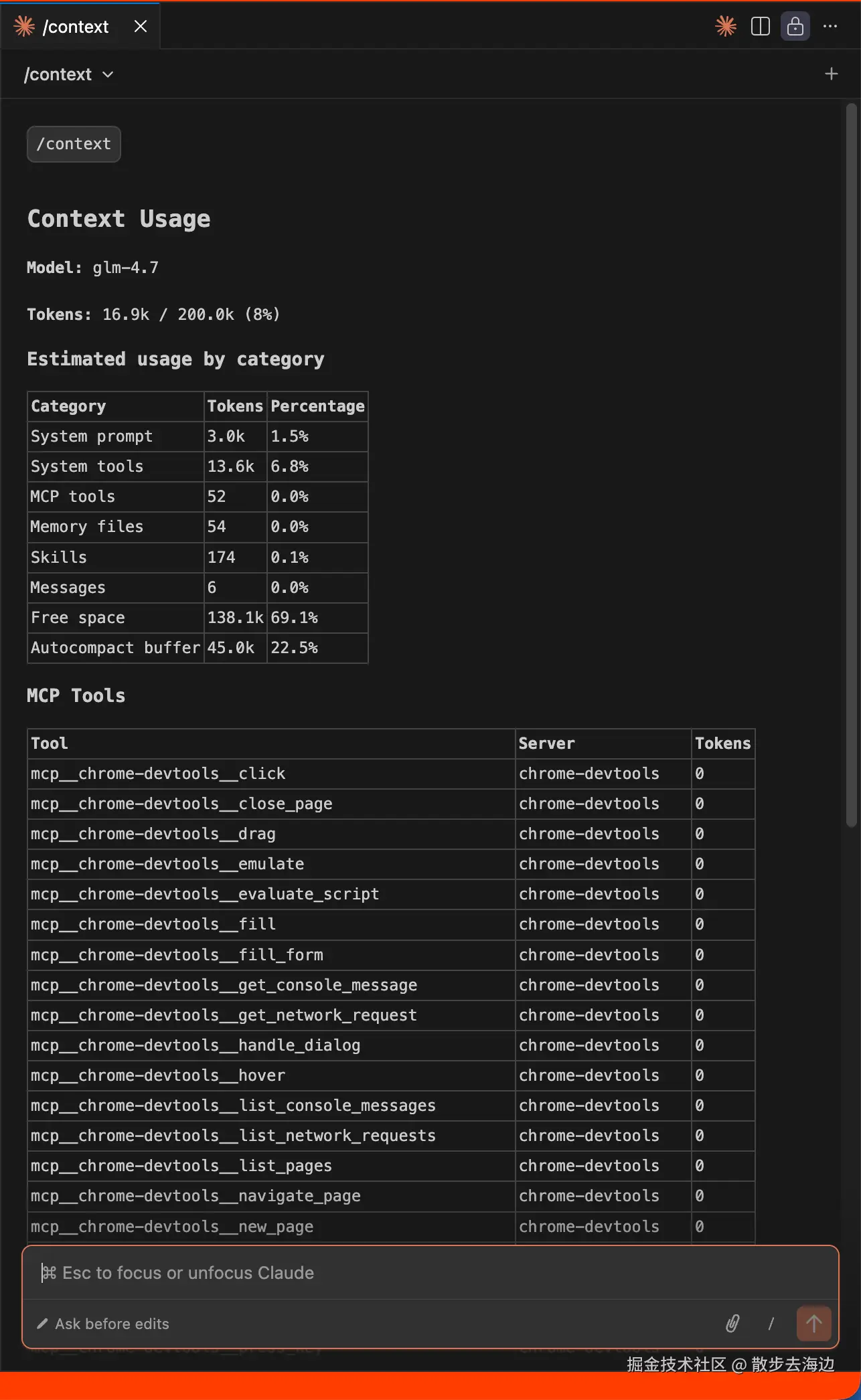 /context 用来查看当前上下文的占用情况
