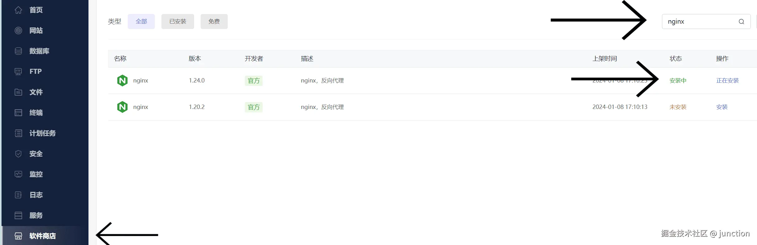 选择软件商店,然后在搜索框里输入“nginx”选择一个进行安装,安装完成后,选择侧边栏的网站,点击顶栏的HTML站点,然后再点击添加网站,创建方式选择手动创建,然后点击下一步编辑
