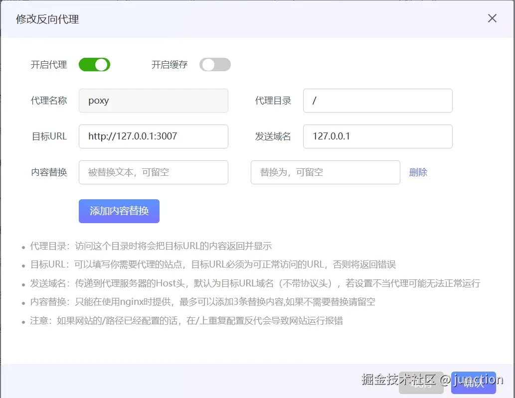 呆梨名称你就随便填,目标URL填:“http://127.0.0.1:你设定的端口”,然后点击确定即可,再从头创建一个,呆哩你的前端或者后端的端口,然后你就可以通过域名访问博客后端以及前端了,现在你已经安装完成了