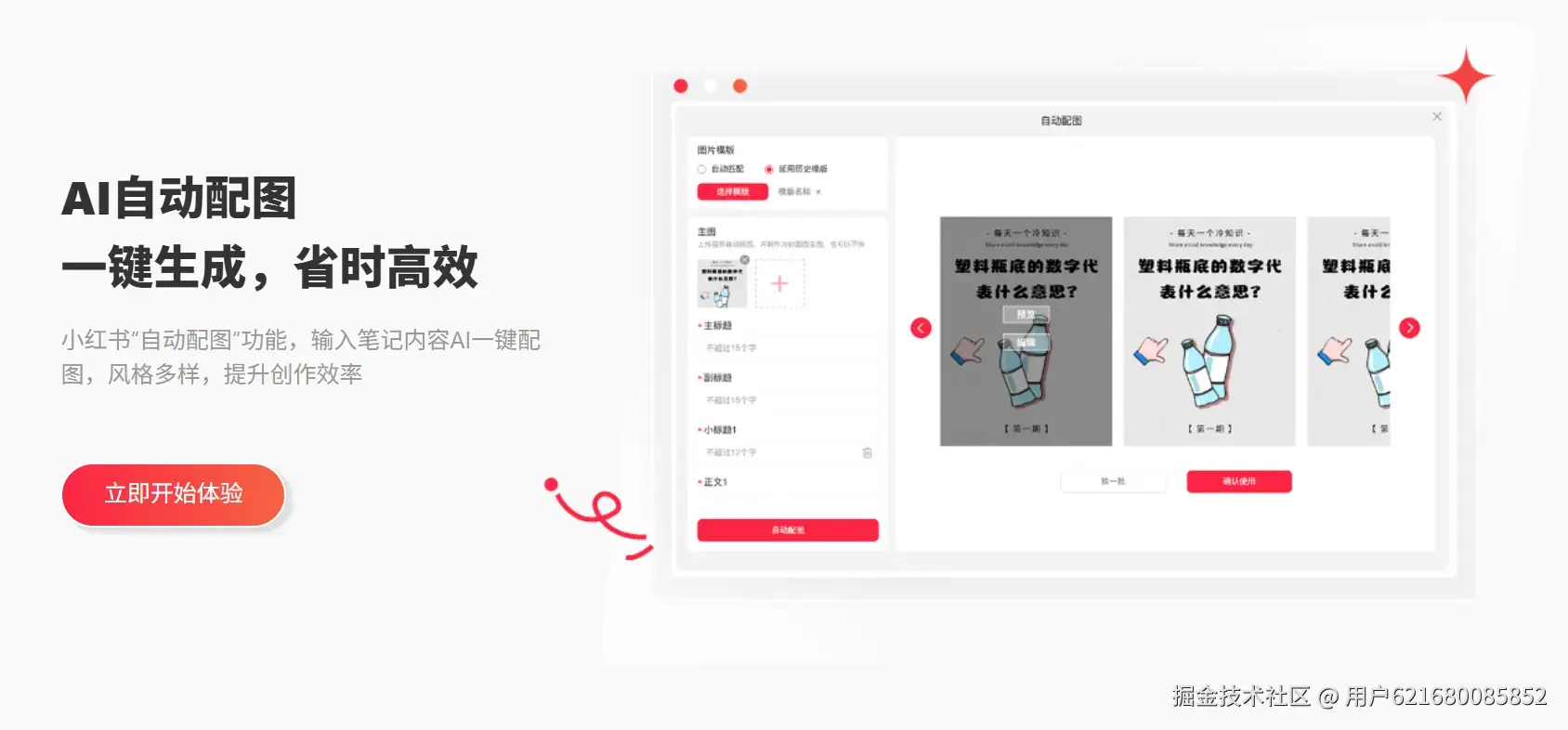 ・一键生成功能:输入核心主题(如「春日平价护肤清单」),自动拆解6-9页图文大纲,文案与配图同步生成,无需额外补充素材,直接可用。