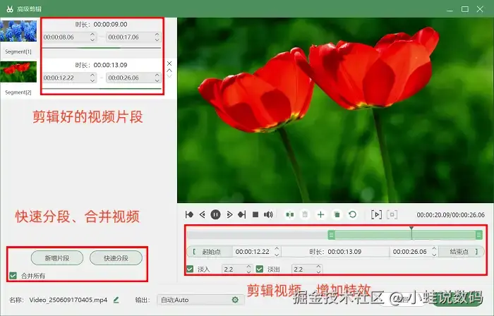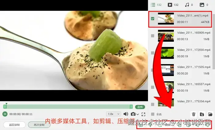 录制完成后,通过页面下方的 【高级剪辑】 工具,可快速完成视频分段、剪切、删除等后期处理,进一步优化视频呈现效果。