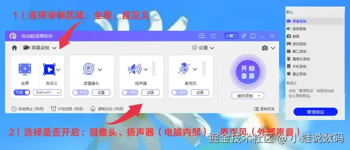 录屏总遇到卡顿掉帧、操作复杂难懂、水印无法去除的麻烦?优加蛙录屏软件来帮你解决。以简单上手、功能专业、运行稳定为核心亮点,这款软件早已成为千万用户信赖的录屏好帮手。