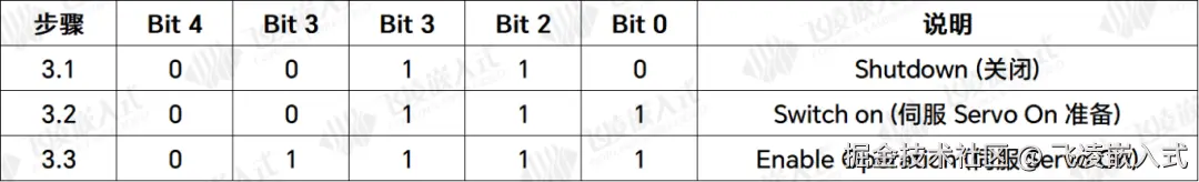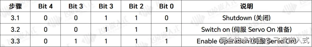 步骤3:设定控制指令,OD 6040h,请依照以下步骤操作。步骤 3.1 与 3.2 是为了使驱动器的状态机 (state machine) 进入准备状态。