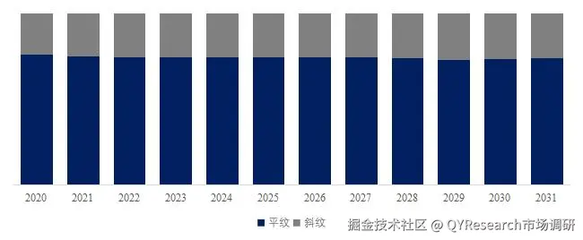 **就产品类型而言,目前平纹是最主要的细分产品,占据大约74.3%的份额。