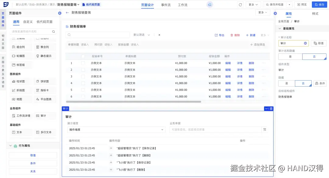今天就带大家全面解锁飞搭页面设计器中的审计组件与审计节点的核心能力,主要包含: