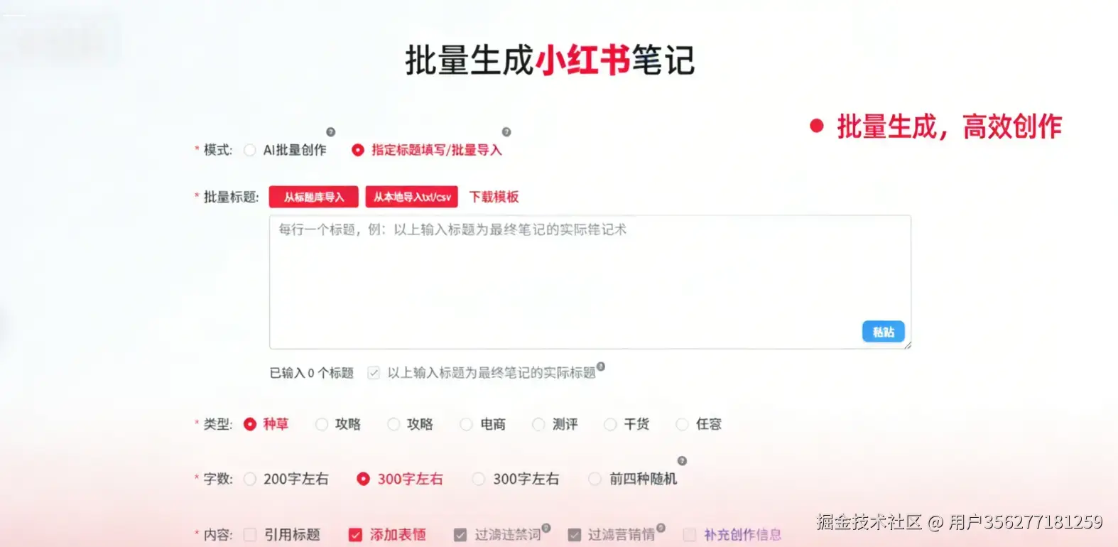 ・批量图文生成:支持同时生成多套不同风格的图文内容,满足账号矩阵差异化需求。