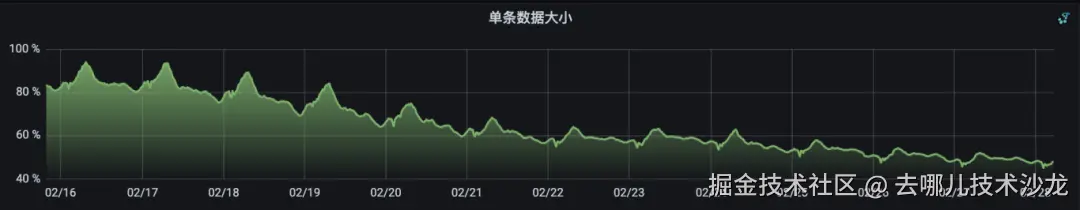 以下是增加压缩批次后,单条数据的大小减少了35%(说明:单条数据大小=流量/条数)。