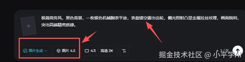 打开即梦,选择 图片4.5模型 ,聚焦腕表机械纹理与金属质感。