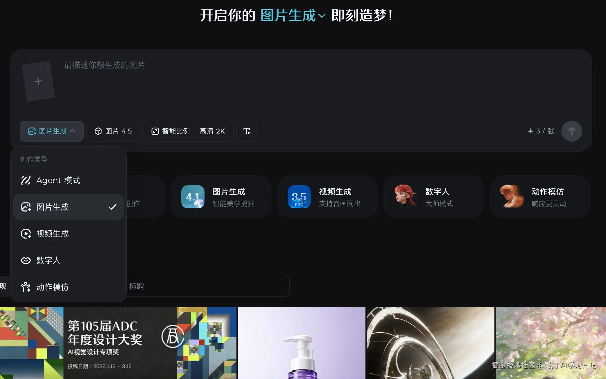 - 第一步:打开即梦AI进入网页版,用手机号验证码登录,新用户有免费批量生成额度,首页点击“图片生成”,选择“图片4.5模型”,进入创作界面。