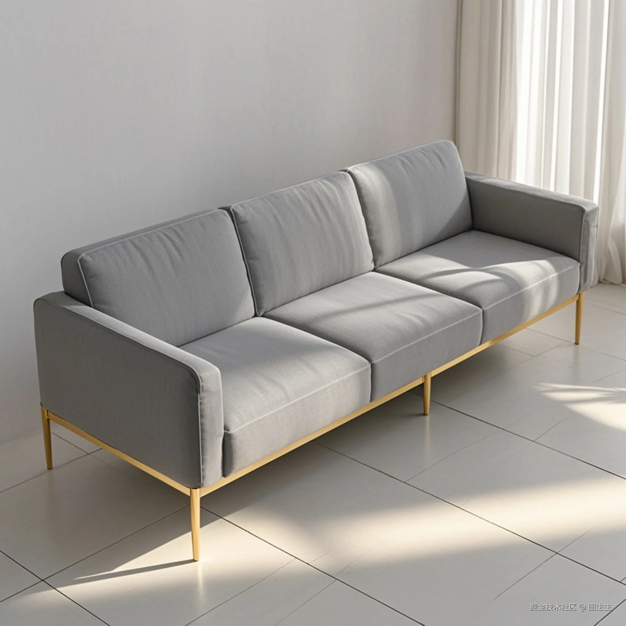 ◇裂变图1:延续深灰色科技布与三人位直排版型,将深灰色主体改成浅灰色,风格偏向意式极简风,适配意式家装场景。