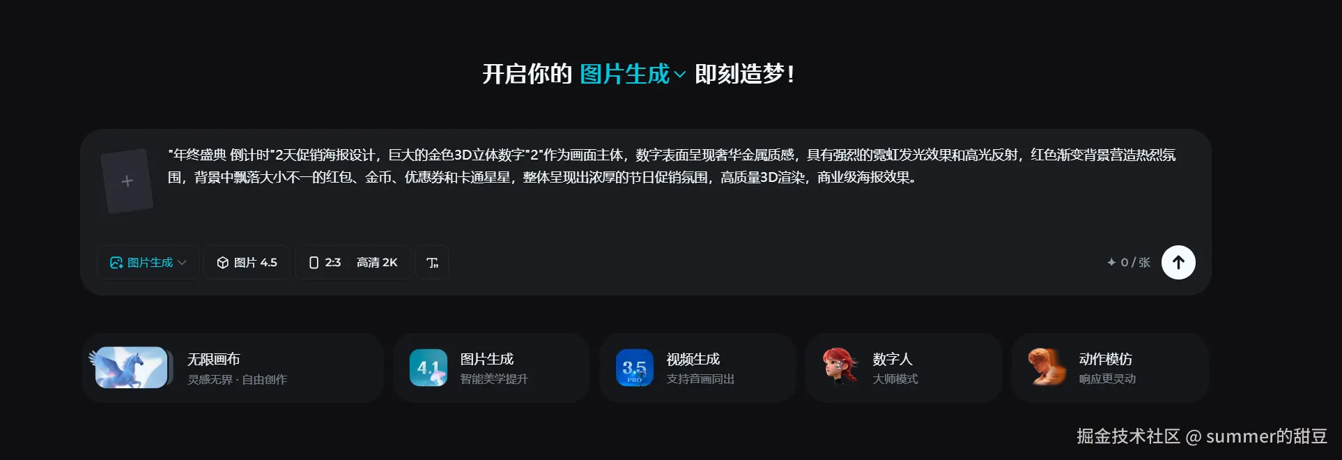 类型四:一体化 AI 生图 + 改图方案--即梦AI(主视觉实战型)
