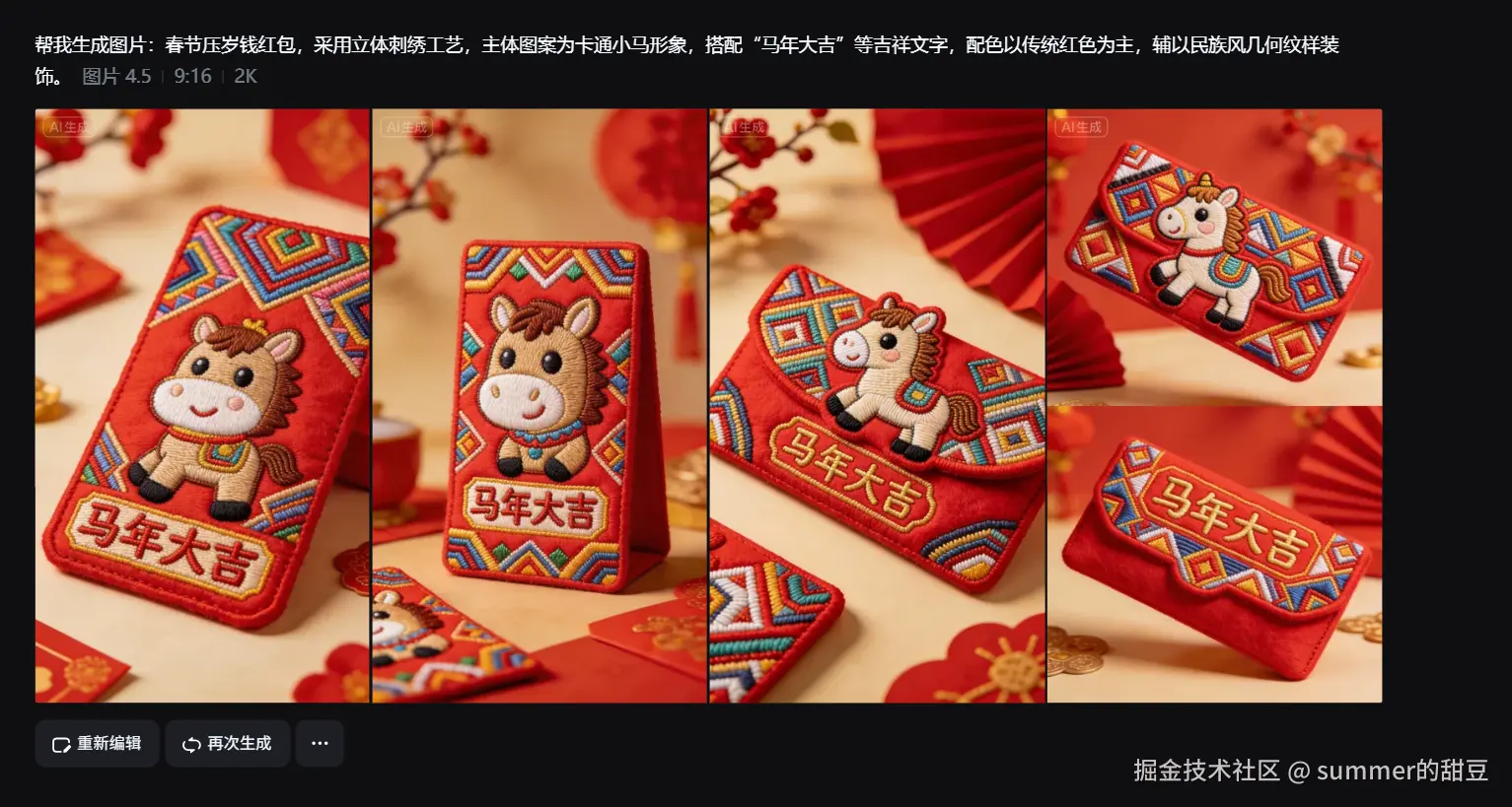 好,我按你这组生图本身的气质和用途,直接给你改成“对得上画面、能马上投放”的版本👇 不再抽象、不再偏流程,完全贴合你这套立体刺绣马年红包。