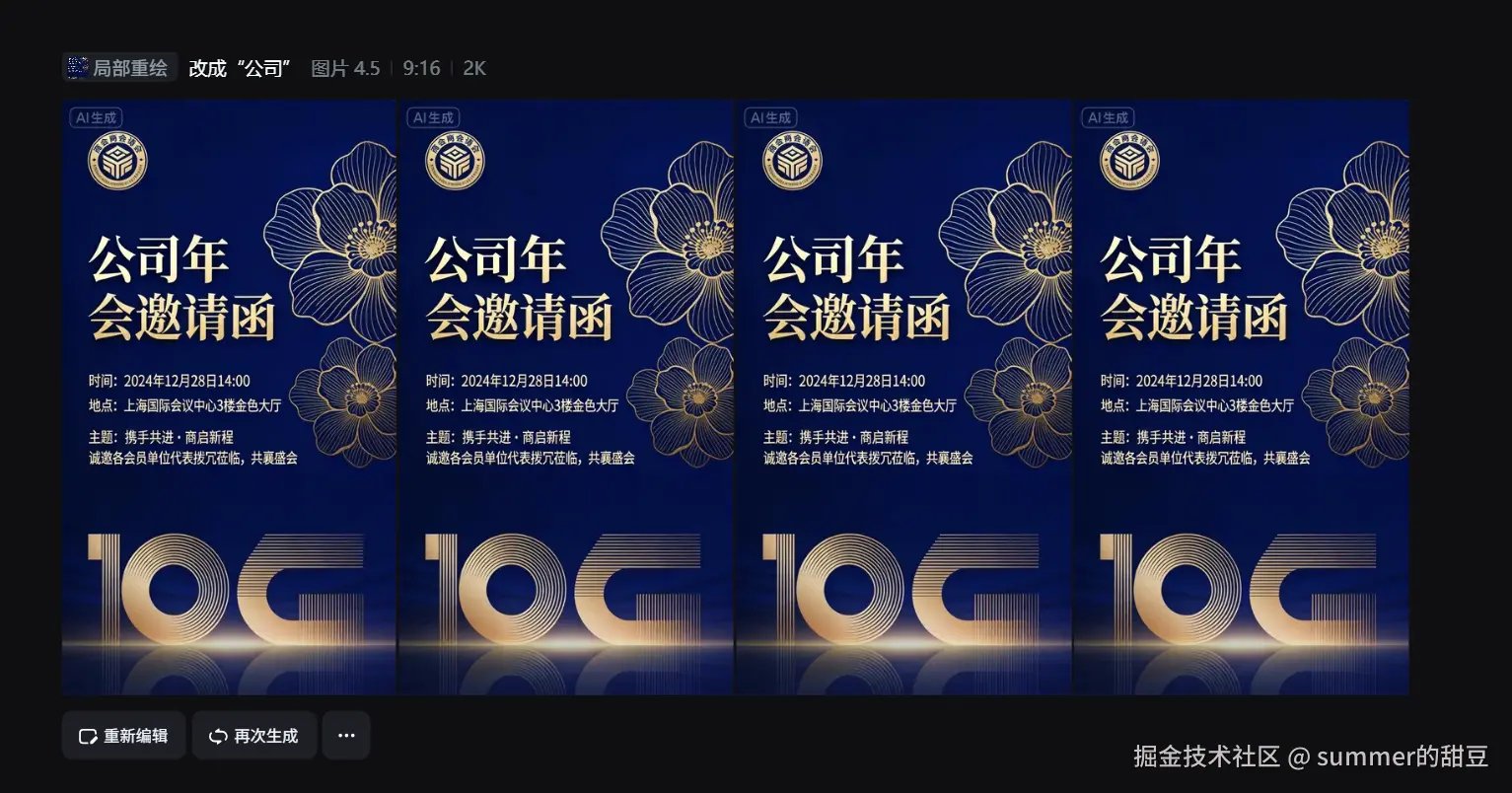 类型一:创意型 AI 生图(好看,但不适合邀请函反复改)