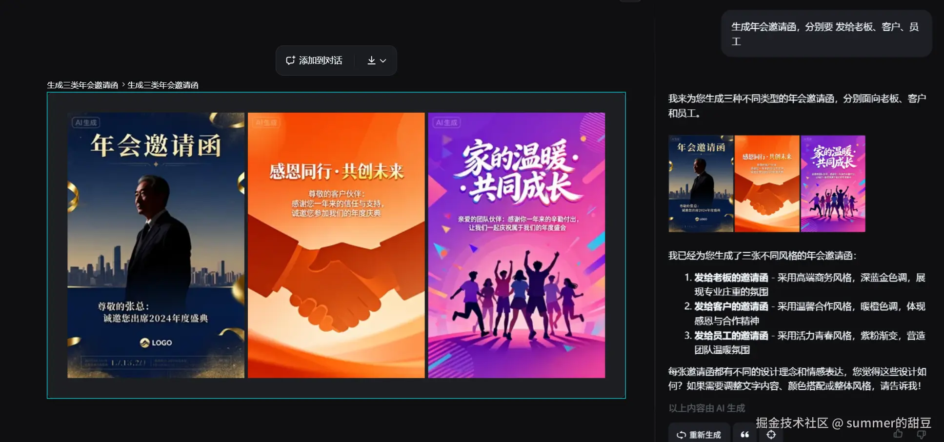👉 从实际体验看, 这是最符合“年会邀请函AI设计工具”定义的一类方案。