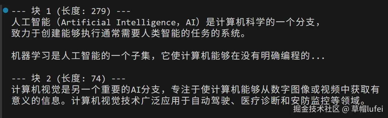 print(f"\n--- 块 {i+1} (长度: {len(chunk)}) ---")