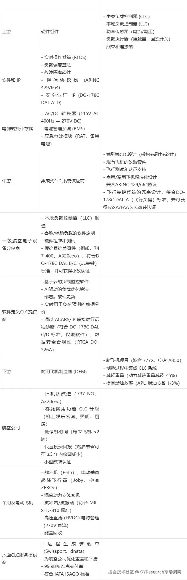 Table 1. 飞机集中式负载控制 (CLC) 解决方案产业链分析