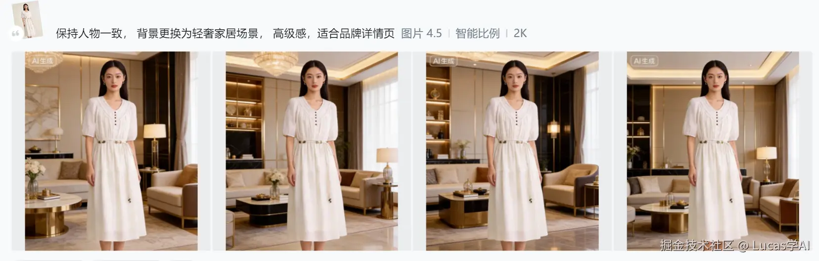 保持人物一致, `` 背景更换为轻奢家居场景, ``高级感,适合品牌详情页