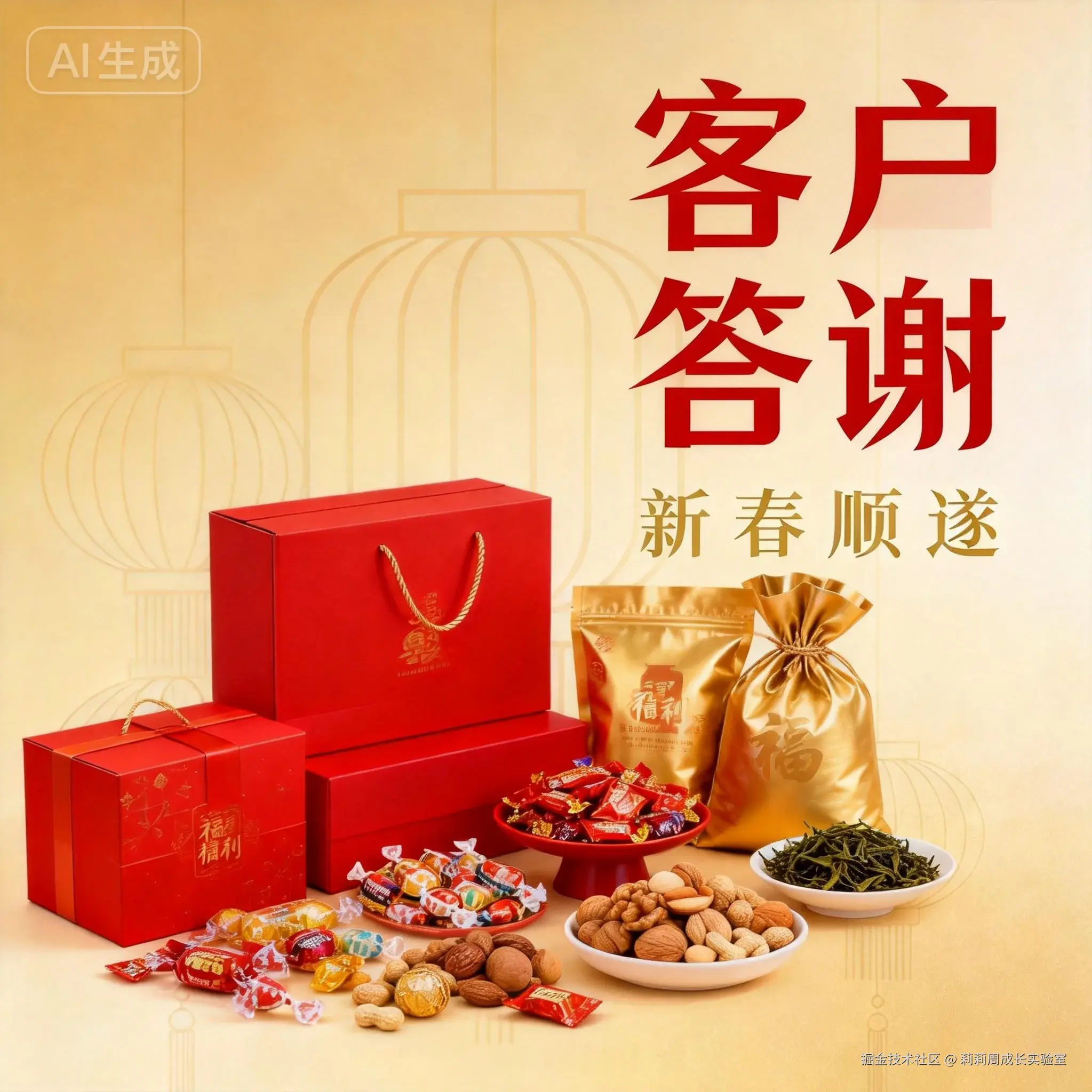 企业客户答谢主题 春节年货节场景 礼盒展示,构图端正 适合 B 端企业使用 喜庆但克制,高级感