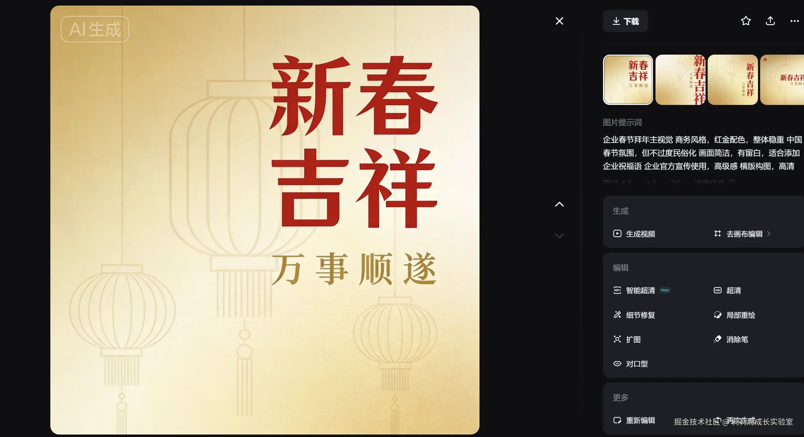 它不是那种“来,我们抽一张图看看运气”的 AI, 而是:你知道自己在做企业拜年物料,它也知道你在干什么。