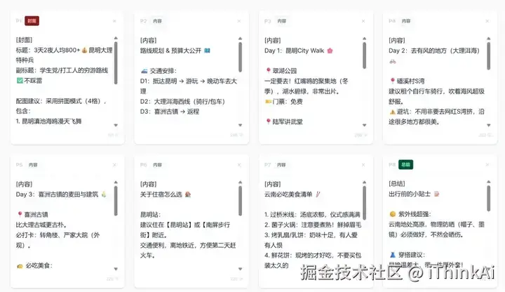 •第二步:生成文案大纲 AI 会自动拆解出适合小红书/小绿书阅读节奏的标题和正文。最强的是,它会把每张图要配什么文字、什么画面都写得清清楚楚。