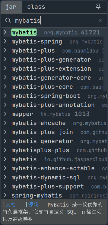 - 功能:直接在 IDEA 内部通过类名或包名快速搜索 Maven 依赖,秒出 GAV 坐标(GroupId, ArtifactId, Version),直接复制进