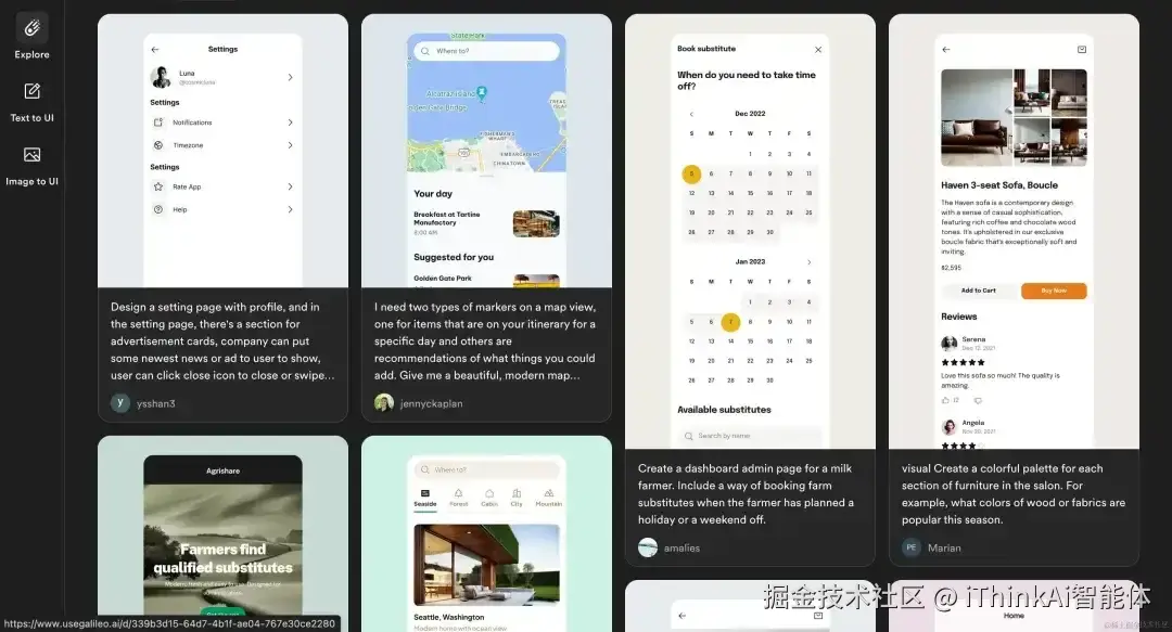 如果你需要做一些新鲜的 UI 设计,但又卡在第一步,Galileo AI 是个不错的选择。