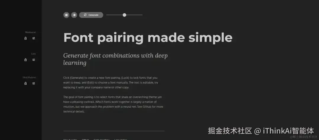 最后聊聊字体。Fontjoy 的逻辑很简单:一键生成最佳字体组合。
