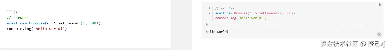 运行 PHP,nodejs,Python,bash 代码,代码块第一行需要包含以 --run-- 字符串,示例见下面截图,当然需要安装相关环境