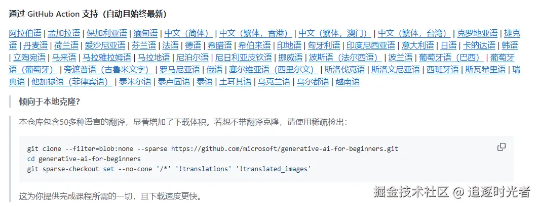 在人工智能浪潮席卷全球的当下,生成式 AI 正以前所未有的速度重塑着各个行业。为助力初学者快速踏入这一前沿领域,微软官方精心打造了这门 AI 初学者入门精品课程:Generative AI for Beginners。