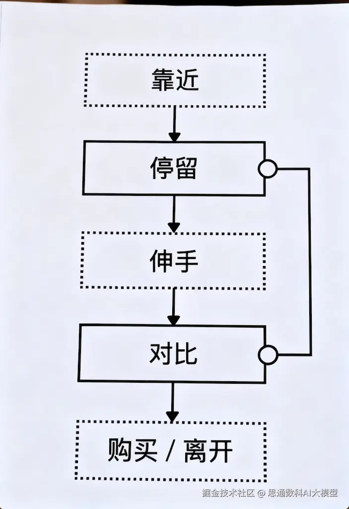 不仅识别动作行为,还能理解行为链路,例如:靠近 → 停留 → 伸手 → 对比 → 购买 / 离开。