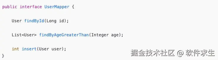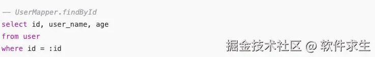 特点只有一句话:方法名 = SQL 名字, 参数名自动绑定,返回值自动映射。