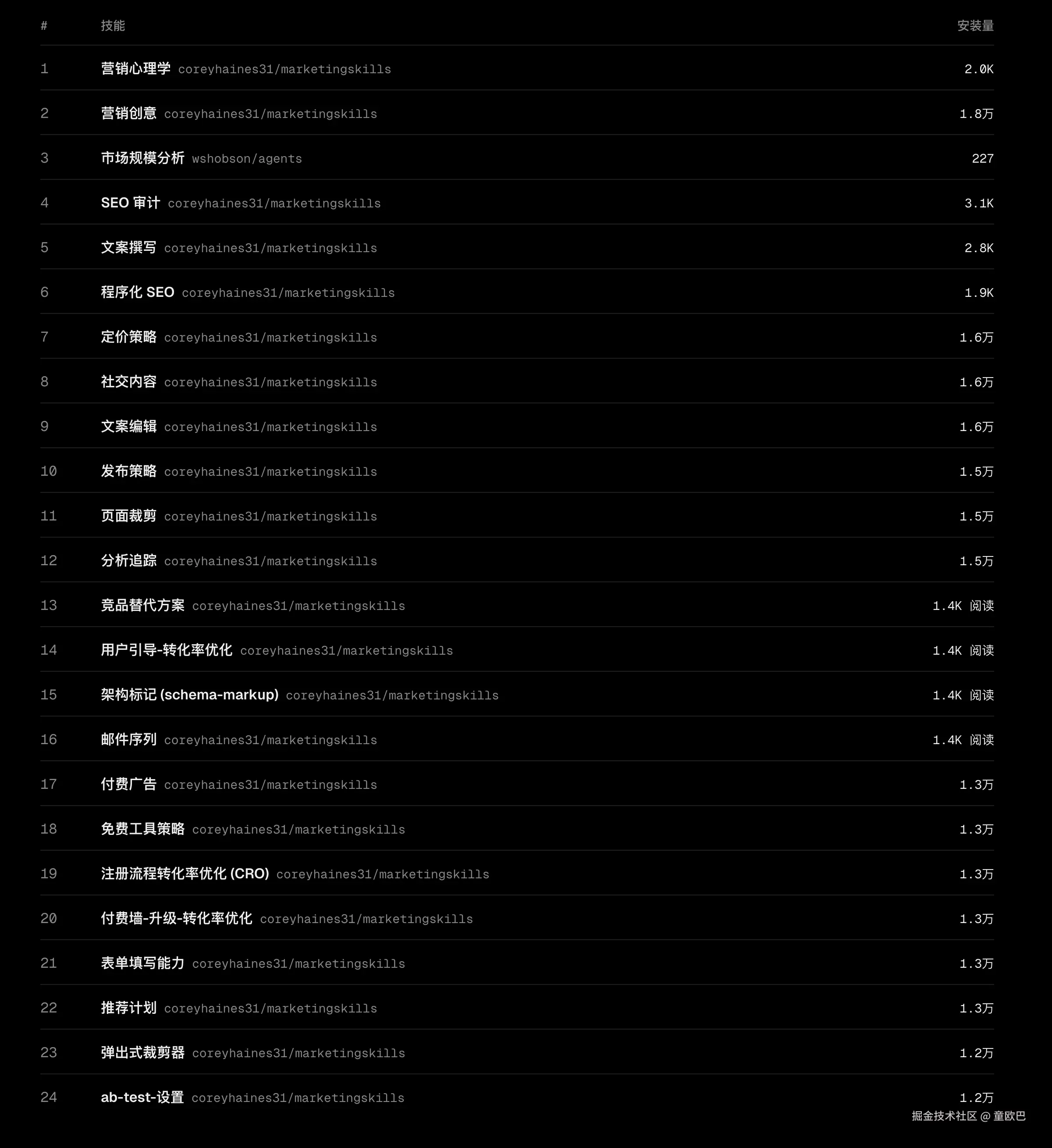 我把排名前 10 的 Skills 摘了出来,大家感受一下。