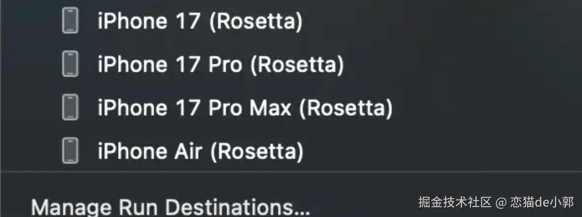 重新下载的会是具有通用架构支持的 iOS 26,而不仅仅是基于 Apple 的 ARM 架构默认配置,所以解决方案是强制 Xcode 下载 iOS 26 模拟器的“通用”版本,而不是默认的“Apple Silicon”,通过 xcodebuild -downloadPlatform iOS -architectureVariant universal 之后,就可以看到通用的 iOS 26 模拟器组件以及 Rosetta 模拟器: