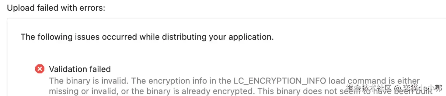 依然还是 iOS 问题,可以看到 2025 大坑,有一半以上都是 iOS 的,问题在于 3.38.1 之后的版本,在提交 App Store 的时候,有概率发现打包提交 iOS 的包会出现 The binary is invalid 的相关错误,简单来说,就是App Store 拒绝了某个二进制文件,因为它包含了无效的内容。