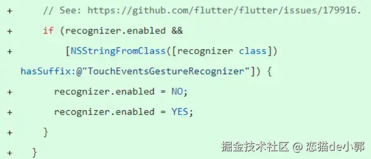 而问题主要出现在 Flutter → UIKit 手势交界,详细的这里就不展开了,反正就是 Flutter 一开始为了解决这个问题做了一件事: