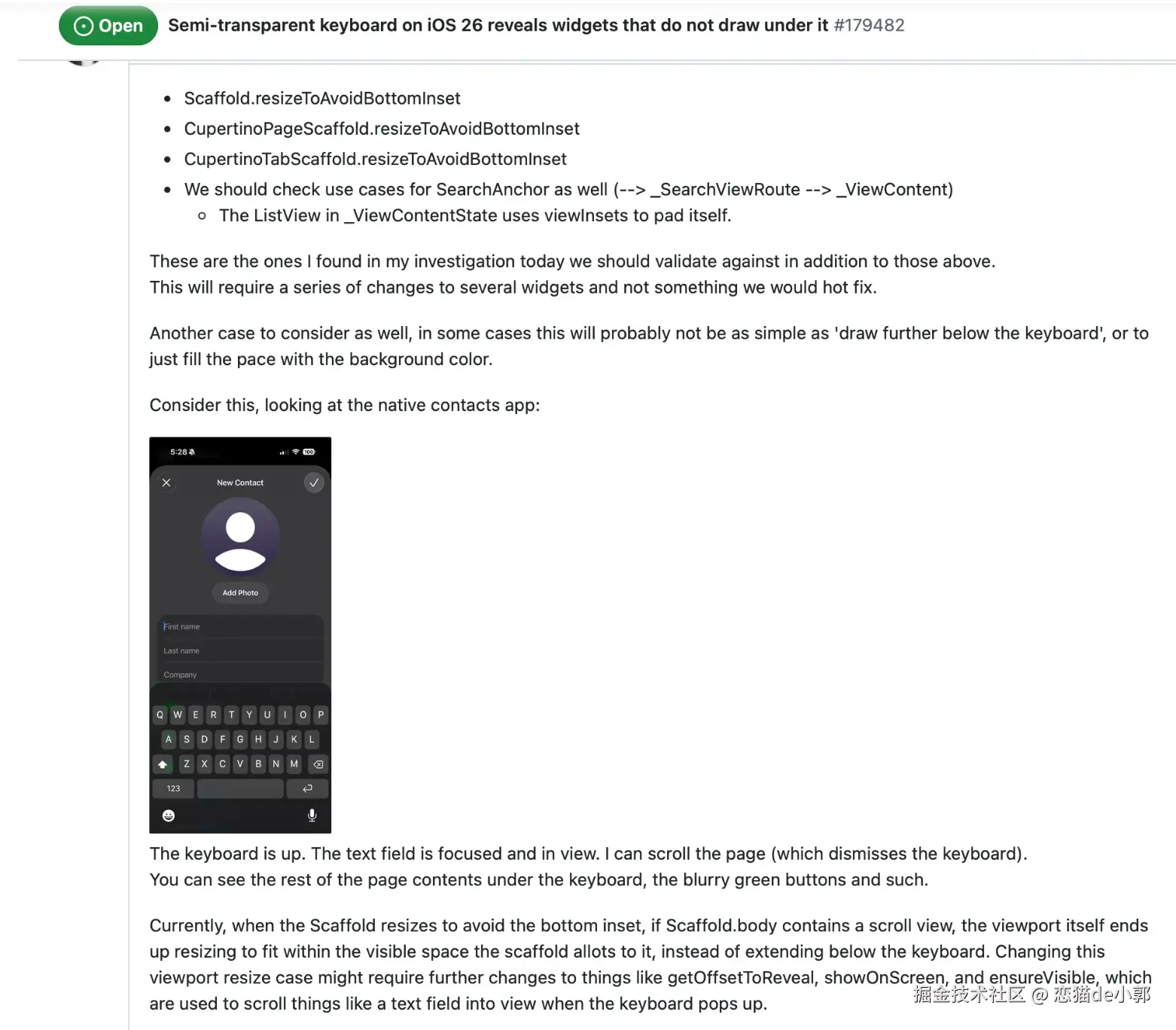 issue 提到问题,问题最明显的场景主要出现在 iOS 26 的
