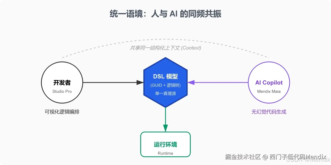 - 而 Mendix 构建的这座基于 GUID + DSL + 统一语境 的大厦,本质上是为 AI 铺设了标准的“数字铁轨”。
