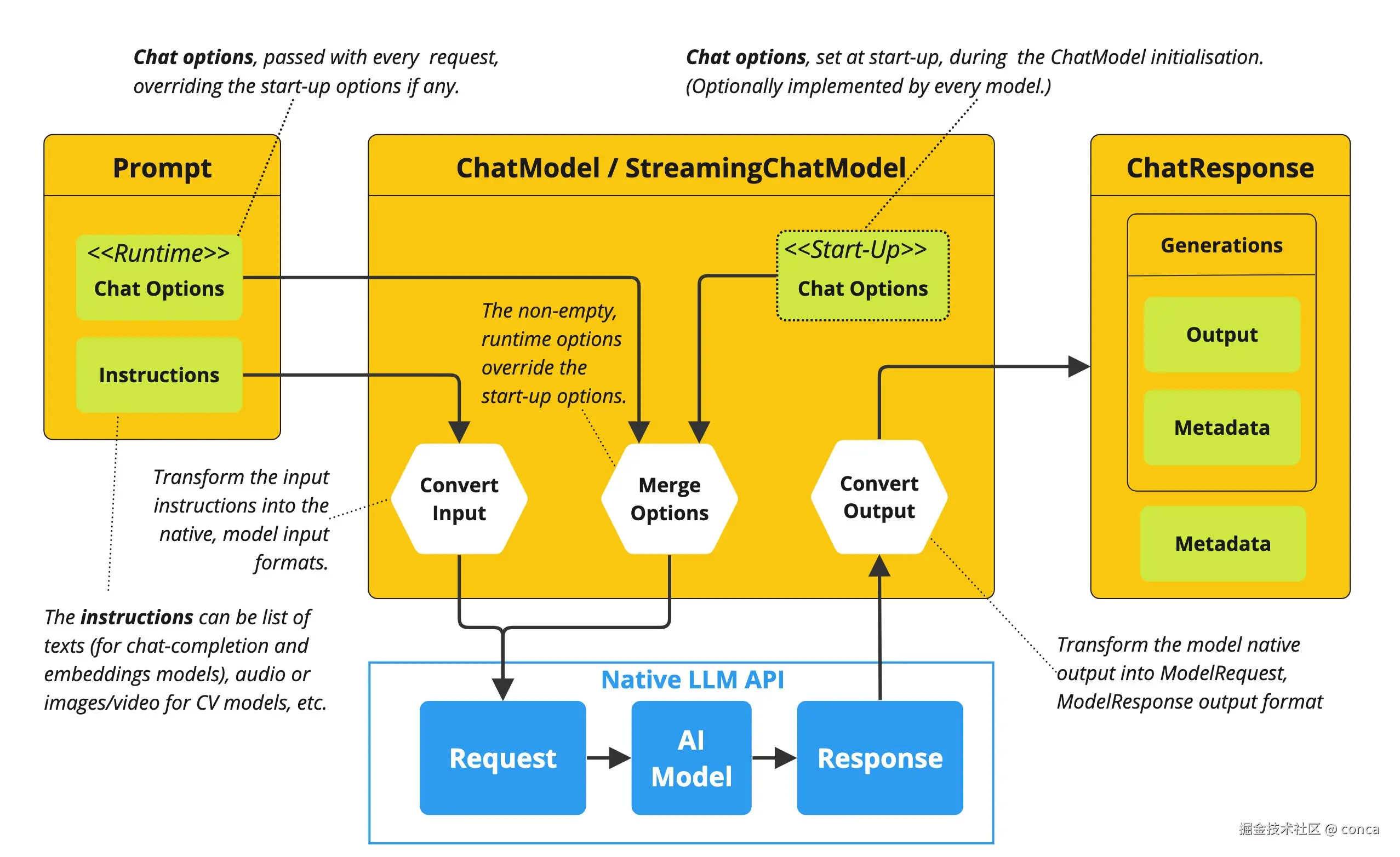 LLM: Large Language Model就是大语言模型,一种学了海量文字的 AI,能听懂人话、说人话,还能写东西、解问题。Spring AI 目前支持处理语言、图像和音频作为输入和输出的模型。