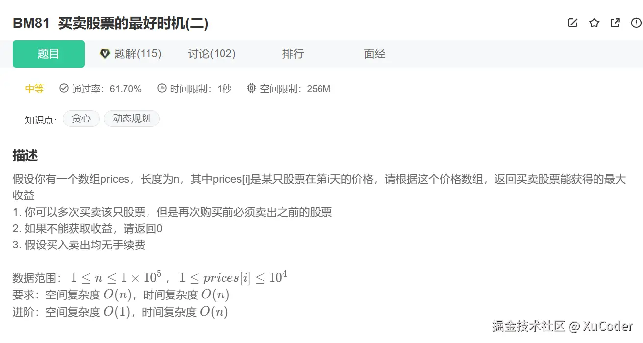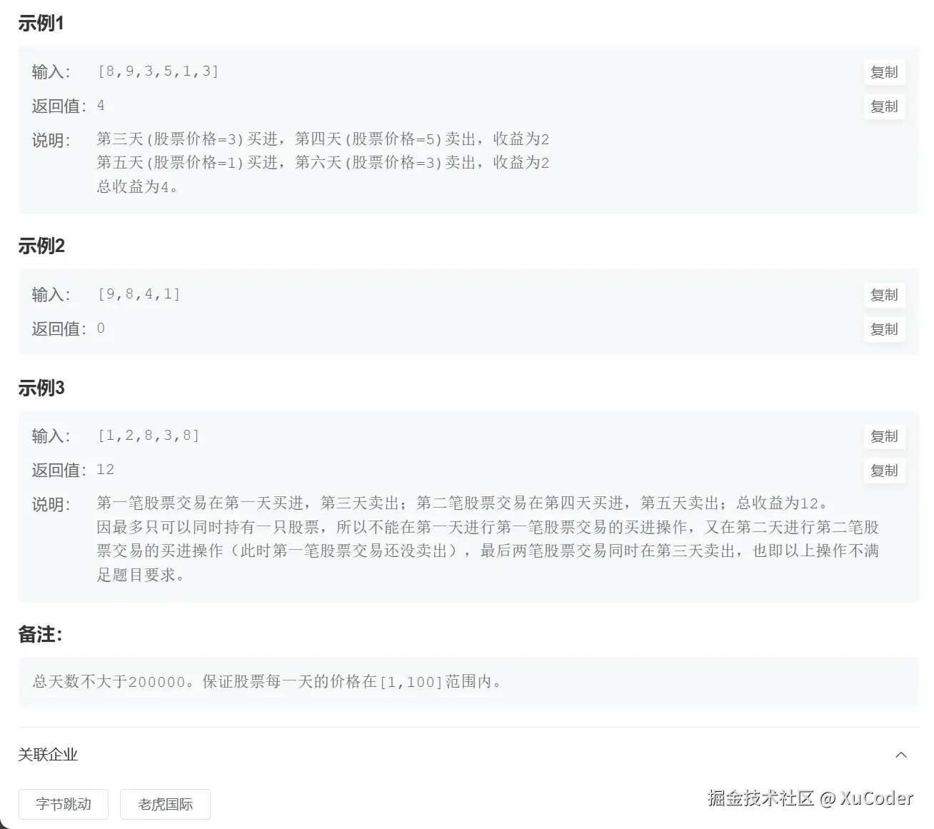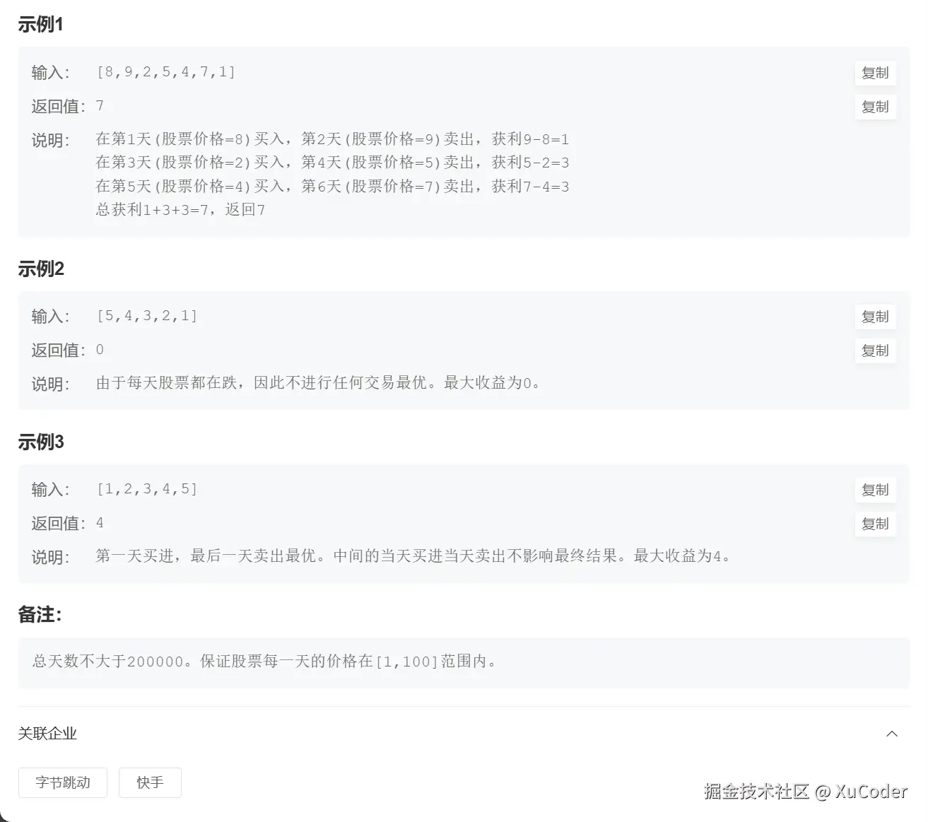 和上面的类型(一)不一样的是,这题可以进行多次交易,代码上的体现就是: