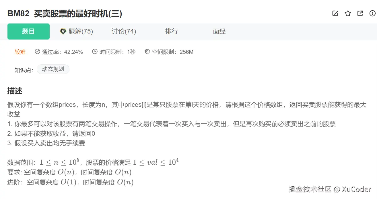 dp[i][j][1]:第i天,最多完成了j次交易,持有股票的最大利润;