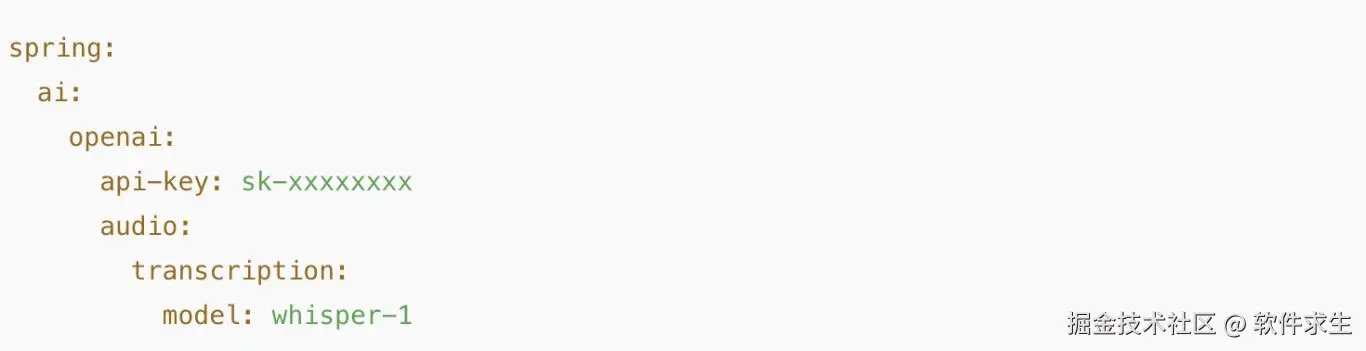 - audio.transcription:告诉 Spring,我们要用“转录能力”