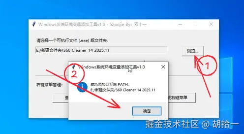 日常添加环境变量你是不是先右击我的电脑 - 属性 - 高级系统设置 - 环境变量这样添加呢?今天分享的这款环境变量添加工具,直接把复杂步骤简化到两步,一键添加路径到 PATH,还能自动检测重复,从此告别繁琐步骤