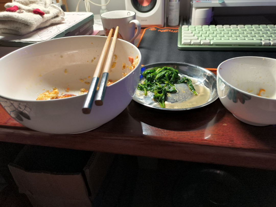 也许就是下午干了太多活,晚上拖延症犯了。超严重。不想洗碗。吃完就瘫在椅子上不想动了。