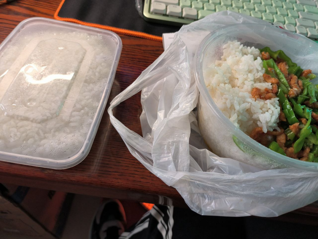 那家店真的神人。选了一份盖饭,店里设置的没选主食不给送,然后我选了一份米饭。结果送了两盒米饭。