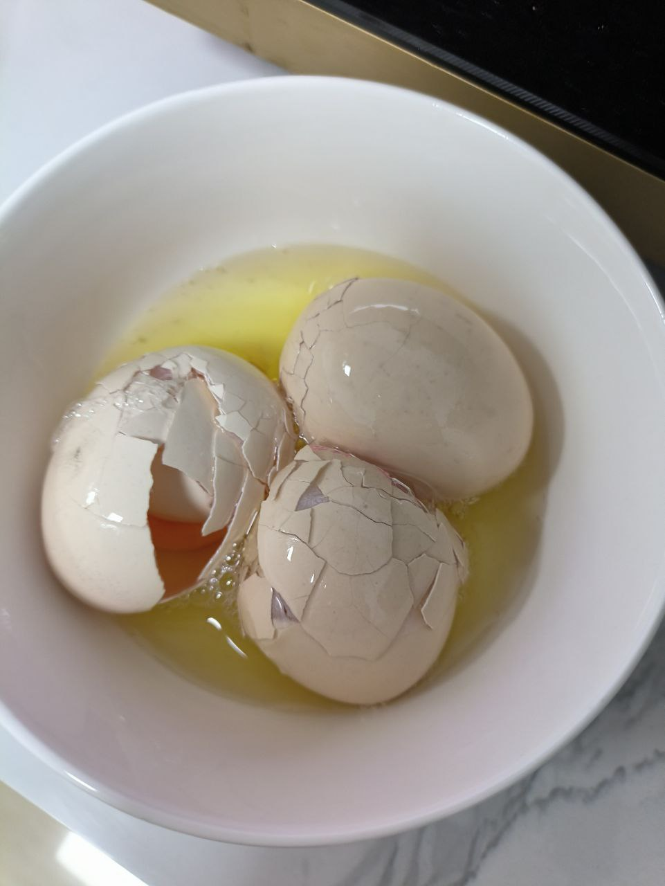 打第一个蛋到碗里的时候,我看起来就有点不对劲。看了一眼蛋壳里面,有黑乎乎的东西黏在内侧,我不知道是什么,但知道肯定不能吃了。